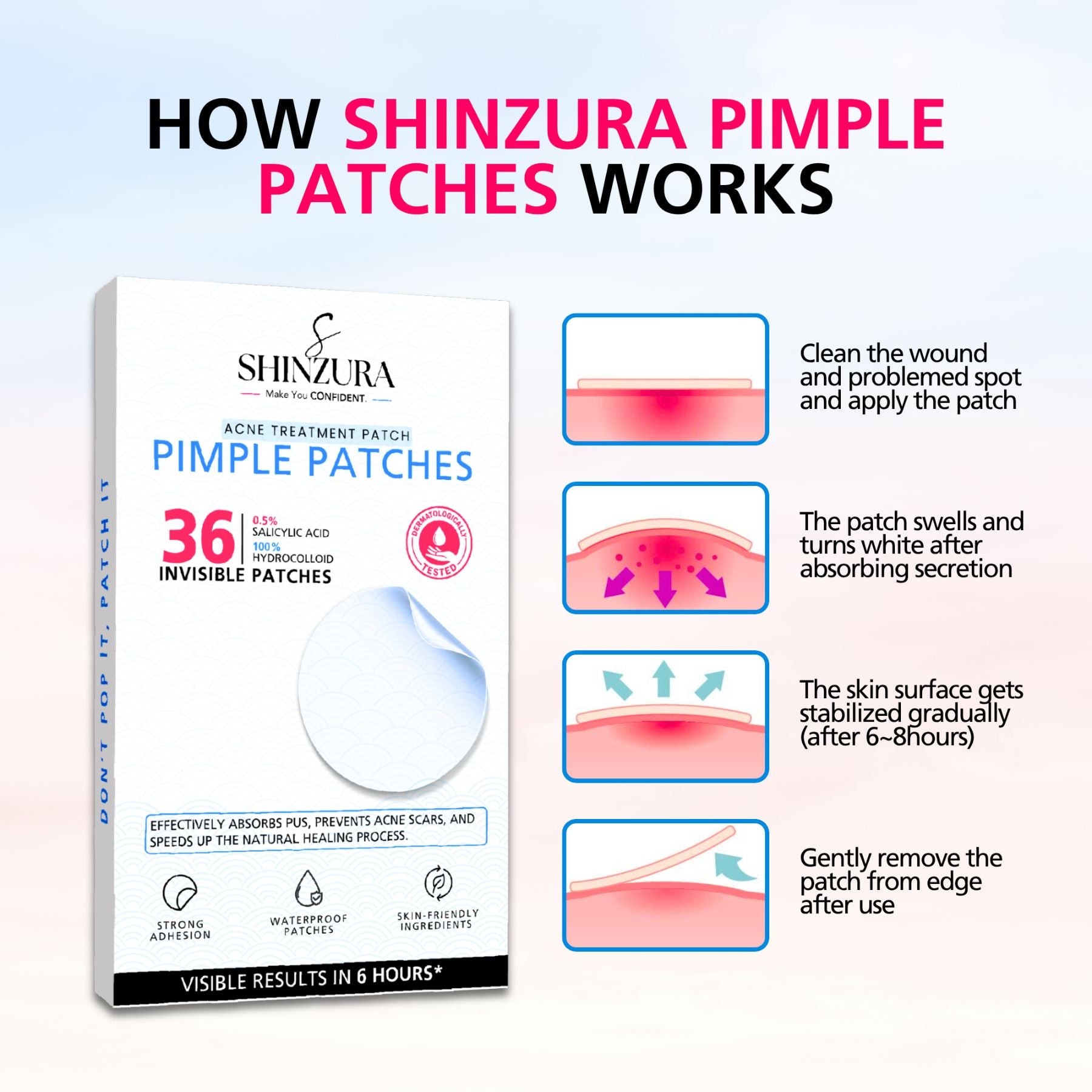- SKINCARE ROUTINE ENHANCEMENT: Shinzura Acne Pimple Patches are a seamless addition to your daily skincare routine, offering targeted treatment that complements your existing cleanser and acne care products. These waterproof, breathable patches enhance the healing process without disrupting your regimen. Loved for their quality, effectiveness, and visible results, they deliver real value and help users maintain consistently clearer, healthier skin.